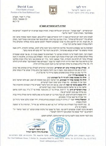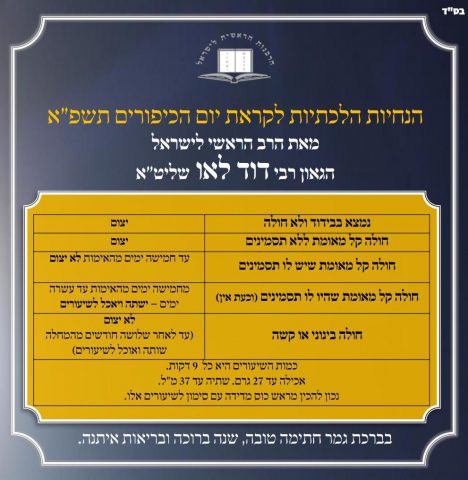 הנחיות ליום הכיפורים תשפ"א – מהרב הראשי לישראל הגאון רבי דוד לאו שליט"א
