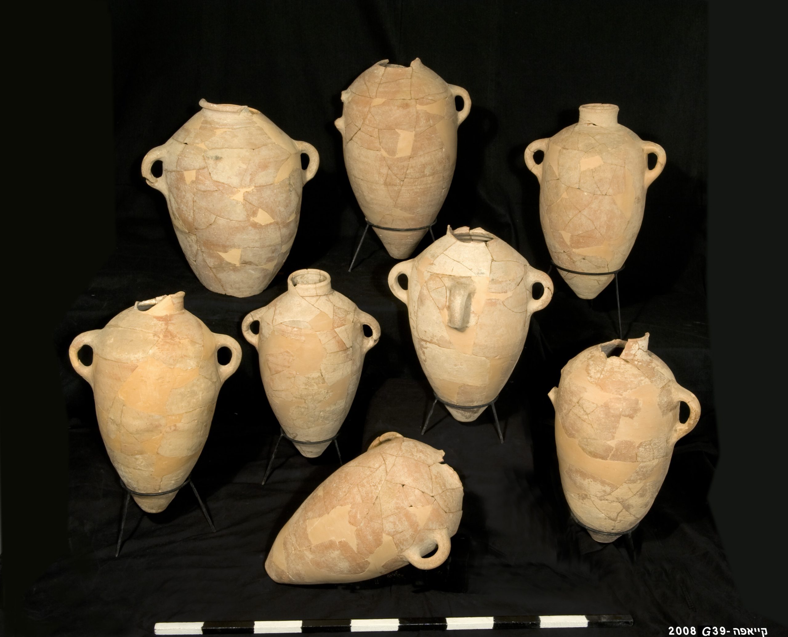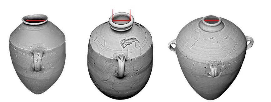 החוקרים סרקו בתלת-ממד כ-300 קנקנים המשויכים לשלושה טיפוסי קנקנים ארכיאולוגיים והם בעלי נפח ממוצע של כ-40 ליטרים – קנקני 'קייאפה' המתוארכים למאה ה-10 לפנה"ס ומזוהים עם האתר ח'רבת קייאפה; קנקני 'היפו' המתוארכים למאה ה-10-8 לפנה"ס ותפוצתם בעיקר בצפון ארץ-ישראל; וקנקני מסחר ממלכתיים המתוארכים לסוף המאה 8-6 לפנה"ס ותפוצתם העיקרית באזור שפלת יהודה והנגב, ומזוהים, בין השאר, על-פי טביעות החותם "למלך" שהוטבעו על ידיותיהם. הקנקנים שימשו בעיקר לאגירה, אחסון והפצה, ומקובל לחשוב עליהם כסימנים לנוכחות אדמיניסטרציה מרכזית.