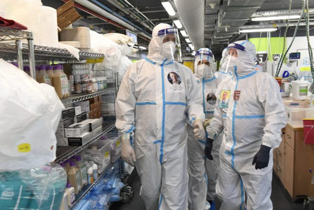 מוקדם יותר סייר השר גנץ במחלקת הקורונה התת-קרקעית שנפתחה בקריה הרפואית רמב"ם בחיפה, ביחד עם קרפ"ר, תת-אלוף פרופסור אלון גלזברג. חברי הנהלת רמב"ם, בראשותו של מנהל בית החולים ד"ר מיקי הלברטל, הציגו לשר את אופן ההתמודדות של הצוותים הרפואיים במתקן התת-קרקעי בטיפול בכ-70 חולים כשרובם במצב קשה.