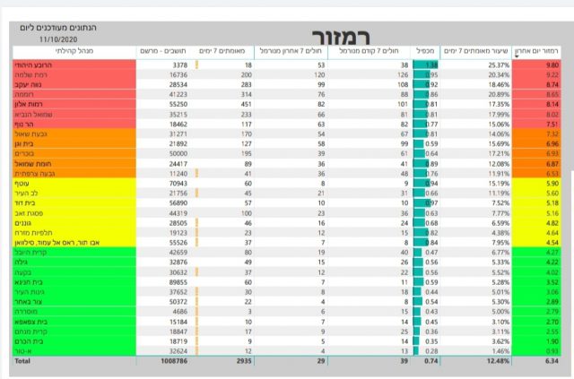 בחלוקה למגזרים מפת התחלואה נראית ככה: