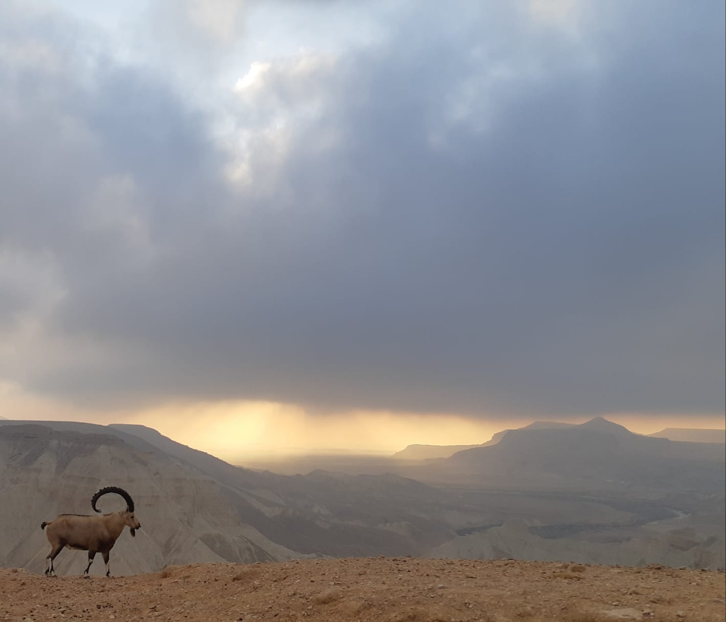 על רקע ענני הסתיו האפרוריים בשעות הבוקר, נצפה במדרשת בן גוריון הבוקר עדר יעלים במצוקי המדבר. צלם רשות הטבע והגנים מיקי וולוקיטה תפס את הרגע המיוחד במצלמתו
