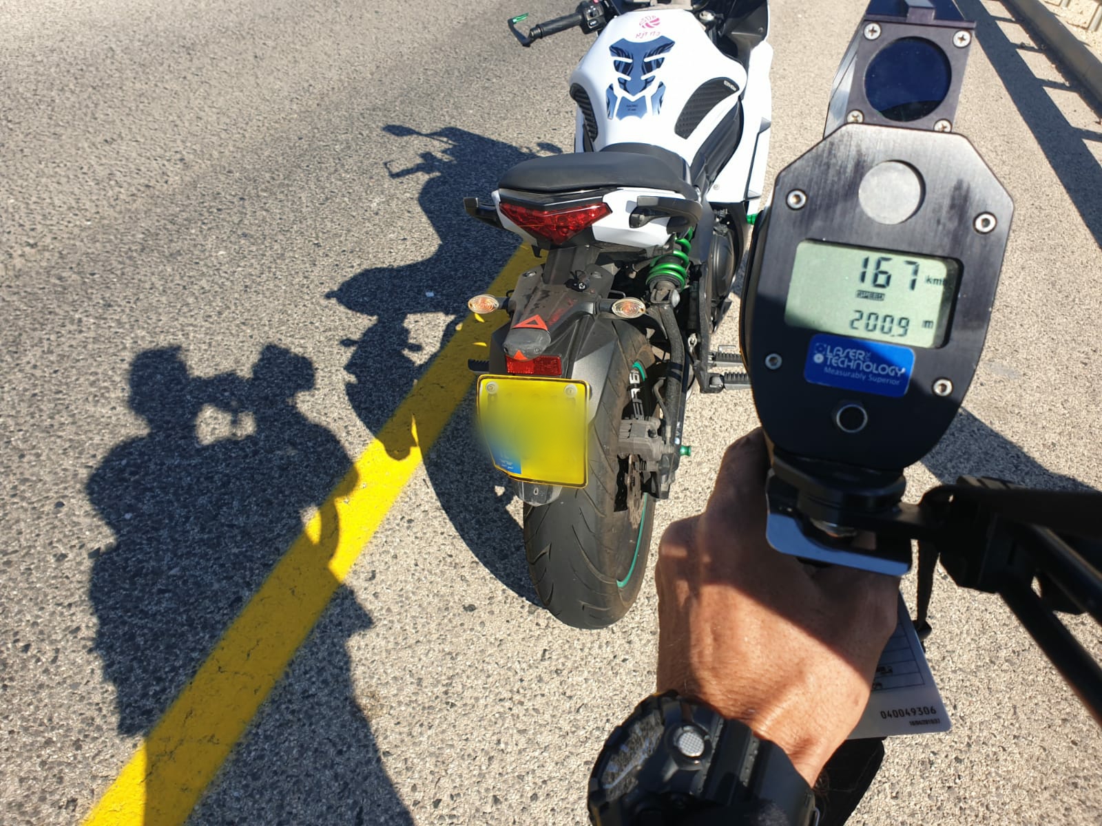עוד באותה הפעילות נקלט אופנוע נוסע במהירות העולה ב-77 קמ"ש מהמהירות המותרת, 167 קמ"ש במקום בה המהירות המותרת הינה 90 קמ"ש. נהג האופנוע בן ה-40 תושב צפת נעצר, נרשמה לו הזמנה לדין ורשיונו נפסל לתקופה של 30 ימים.