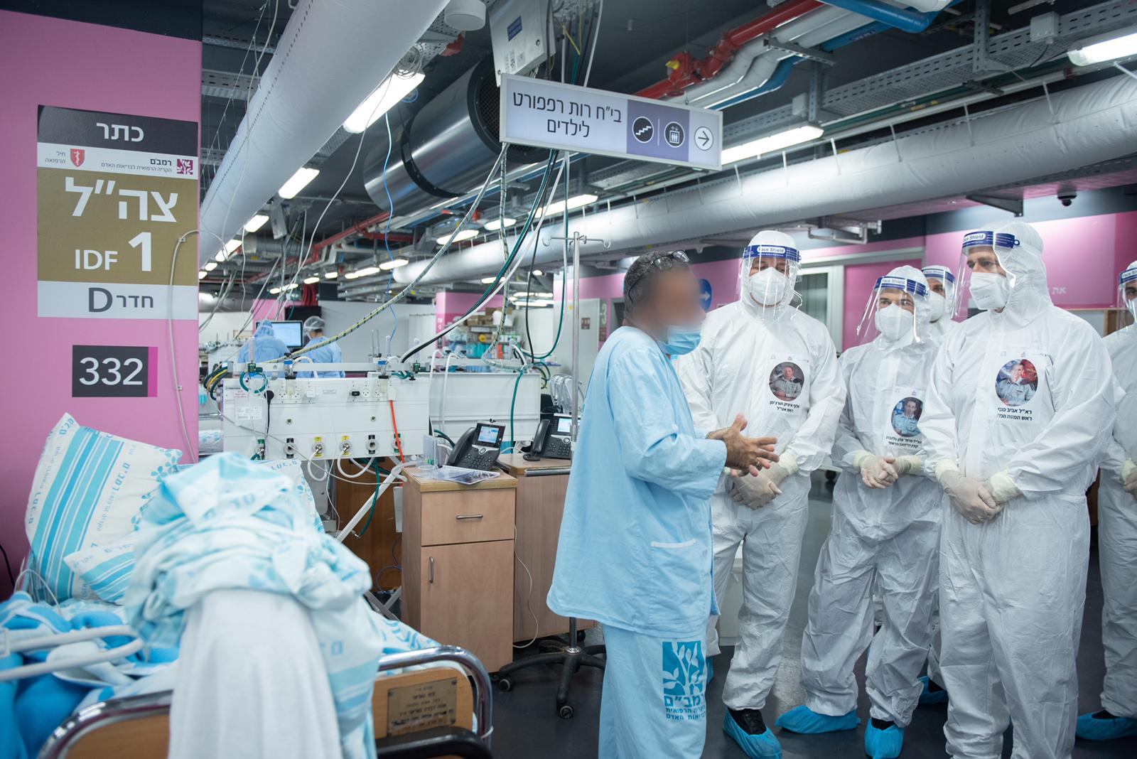 לטובת הפעלת המחלקות בבית החולים הוקצו כ-100 אנשי צוות רפואי צבאיים; הכוללים רופאים ורופאות, אחים ואחיות, חובשים, חובשות וסגל רפואי נוסף מתוך מערך הרפואה הצבאי הסדיר של חיל הרפואה. במהלך ביקורו ביקר הרמטכ"ל במחלקת הקורונה התת-קרקעית, שם פגש בחולים ושוחח עמם. בנוסף שוחח עם הצוות הרפואי של צה"ל ושל בית החולים והודה להם על עשייתם.