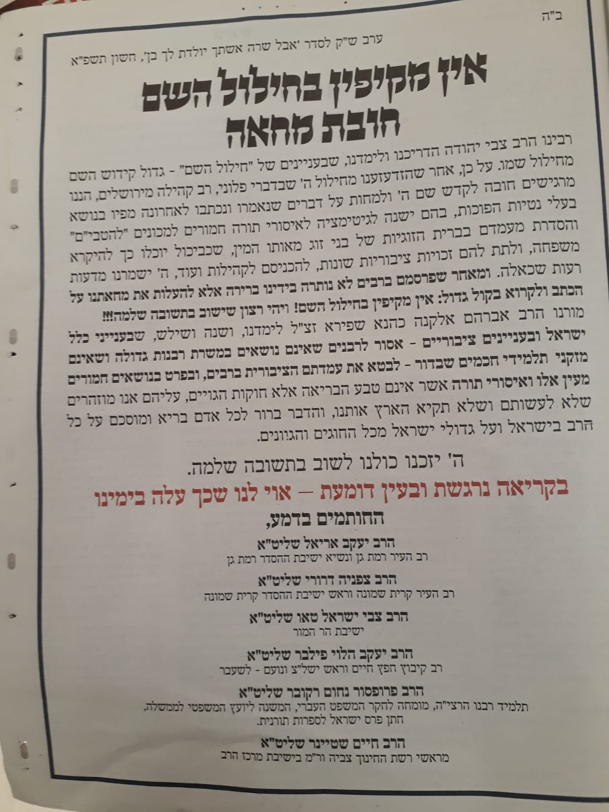 מאחר שפרסמם ברבים, לא נותרה בידינו ברירה אלא להעלות את מחאתנו על הכתב ולקרוא בקול גדול: "אין מקיפין בחילול השם! ויהי רצון שישוב בתשובה שלמה!!!"