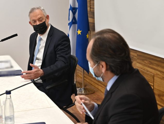שר הביטחון בני גנץ נפגש הבוקר (ה') עם שגרירי מדינות האיחוד האירופי בישראל, ביחד עם שגריר האיחוד בארץ, עמנואל ז'ופרה.