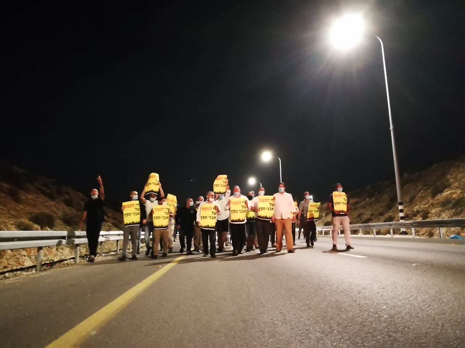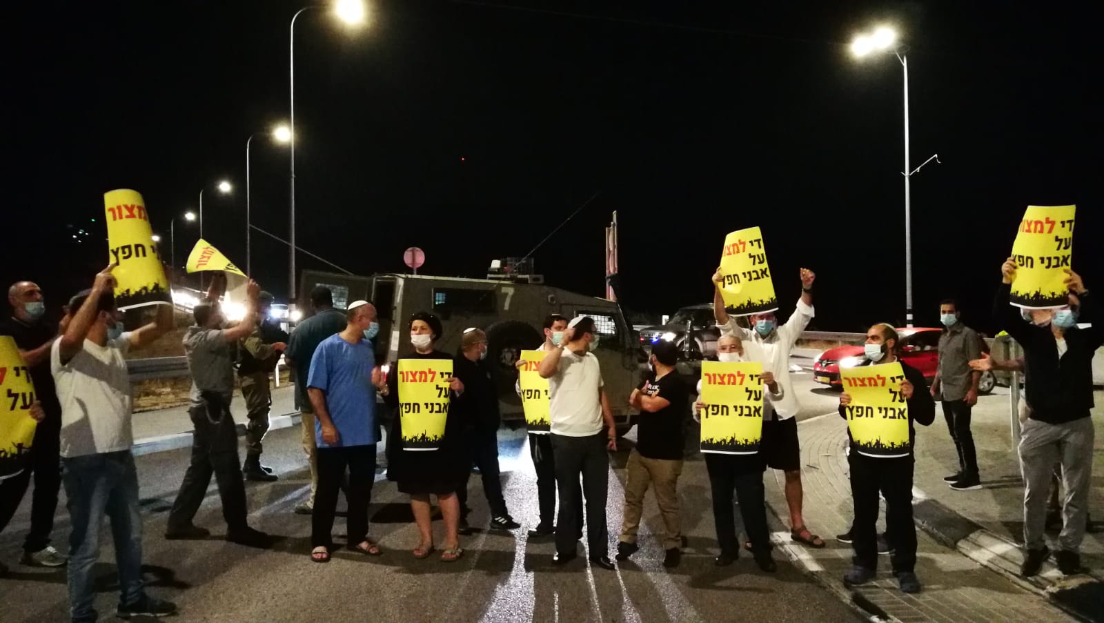 עשרות מתושבי הישובים אבני חפץ וענב חסמו הערב (מוצ"ש) את כביש 57 והפגינו בקריאה "די למצור על תושבי אבני חפץ ועינב".