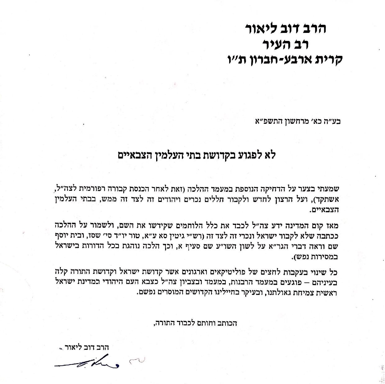 במכתב שהגיע לידי סרוגים כותב הרב ליאור:
