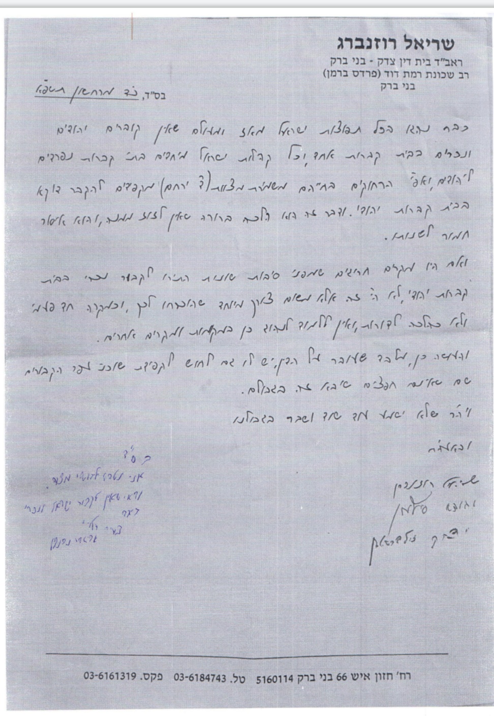 כעת לפסק ההלכה שלהם מצטרף גם הרב נבנצל שהוסיף בכתב ידו על גילוי הדעת שלהם: