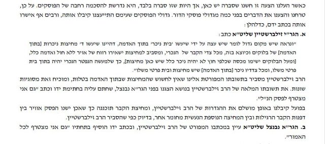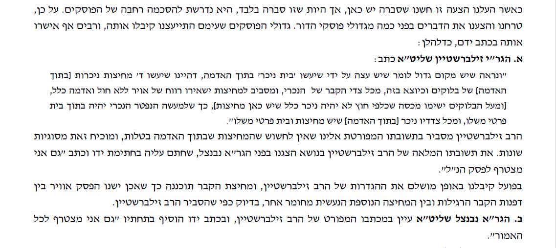 הרב זילברשטיין יחד עם הרב סילמן והרב רוזנברג כתבו: