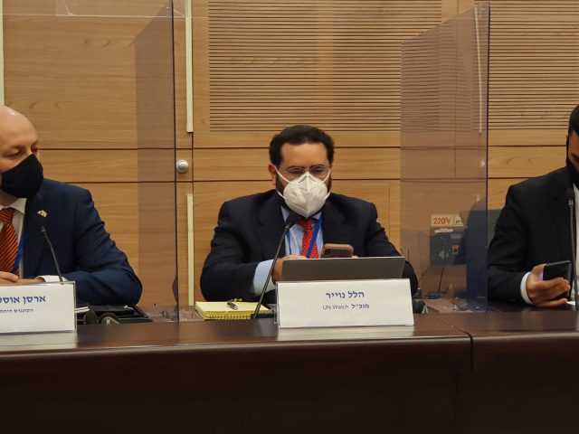 לכנסת הגיעו באופן אישי מנכ"ל ארגון UN Watch הלל נוייר, סמנכ"ל הוועד היהודי האמריקאי (AJC) אבי מאיר, סגן ראש עיריית ירושלים פלר חסן-נחום, מומחה למשפט בינלאומי וזכויות אדם ומנהל הקונגרס הישראלי-יהודי ארסן אוסטרובסקי, מנהל "יחד- ערבים זה לזה" יוסף חדד, וחבר הכנסת לשעבר דב ליפמן.
