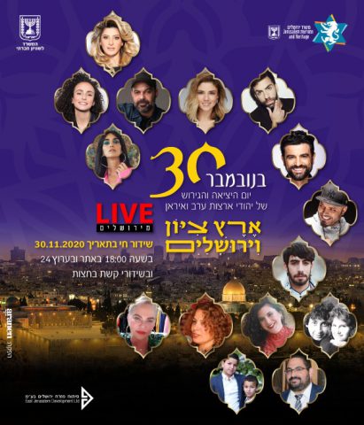 מחר בערב, (שני) בשידור חי מירושלים, באירוח שרי ירושלים ומורשת והמשרד לשוויון חברתי ולגמלאים, יתקיים הטקס הלאומי לציון יציאת וגירוש יהודי ארצות ערב ואיראן.