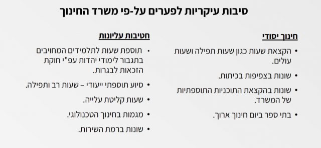 - בתי ספר ביום חינוך ארוך.