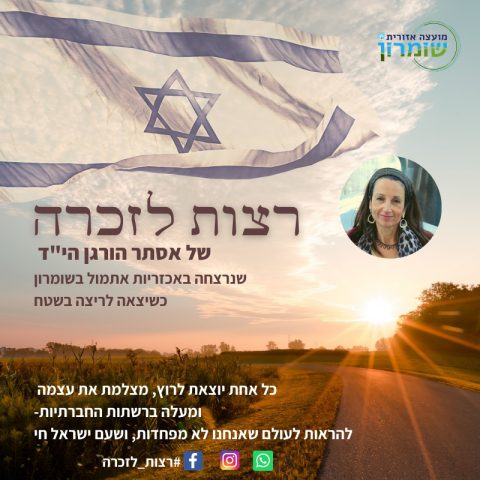 בתגובה לרצח המזעזע שבוצע הבוקר (שני) ביער ריחן שבצפון השומרון, עולה לאוויר קמפיין רשת לזכרה של אסתר הורגן הי"ד ש"נקרא רצים לזכרה". " כל אחת יוצאת לרוץ, מצלמת את עצמה ומעלה ברשתות החברתיות להראות לעולם שאנחנו לא מפחדות ושעם ישראל חי", נכתב במטרת הקמפיין.
