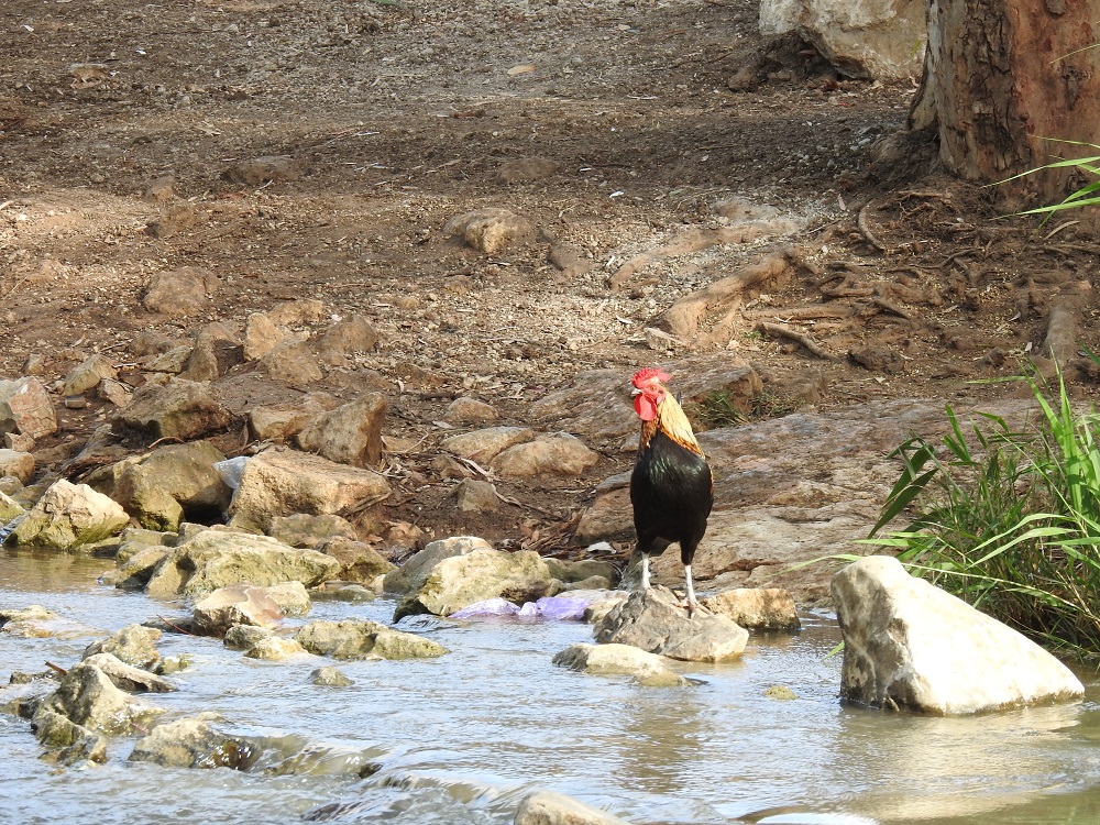 הוא מטיל אותם בתוך גומה שהוא חופר בחול, והמזל של התרנגול שהוא עדיין לא פגש תן.