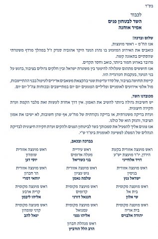 בין ראשי המועצות החתומים על המכתב: יו"ר מועצת יש"ע – דויד אלחייאני, ראש עיריית מעלה אדומים – בני כשריאל, ראש מועצת שומרון – יוסי דגן, ראש מועצת בנימין – ישראל גנץ, ראש מועצת גוש עציון – שלמה נאמן, ראש מועצת הר חברון – יוחאי דמרי, ראש מועצת בית אל – שי אלון, ראש מועצת קדומים – חננאל דוראני, ראש מועצת קריית ארבע – אליהו ליבמן, ועוד.