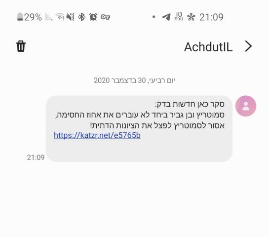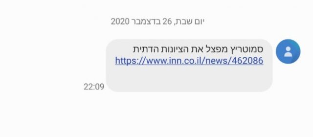 במסרון הראשון נכתב "סמוטריץ' מפצל את הציונות הדתית" בליווי קישור לכתבה באתר אינטרנט חדשותי, ובמסרון נוסף, שנשלח לאחר מספר ימים, נכתב "סקר כאן חדשות בדק: סמוטריץ' ובן גביר ביחד לא עובדים את אחוז החסימה, אסור לסמוטריץ' לפצל את הציונות הדתית!"
