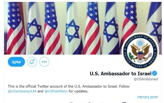 מדיניות חדשה בממשל: זמן קצר לאחר השבעתו של ג'ו ביידן כנשיא ארה"ב החדש, הממשל שינה הערב (רביעי) את הגדרת השגריר בישראל בטוויטר – שכעת מוגדר כ"שגריר ארה"ב לישראל, עזה והגדה המערבית".