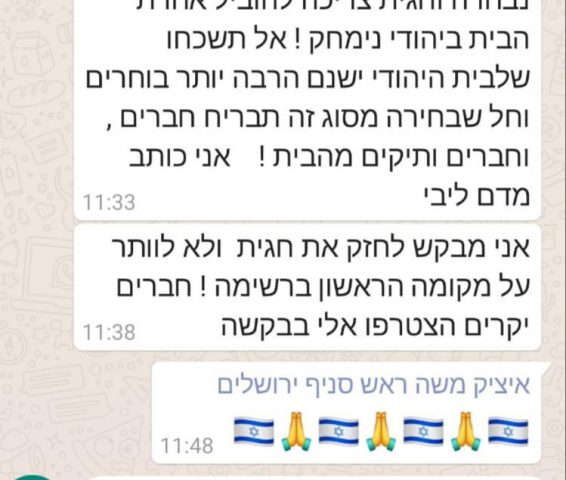 כמו כן, בקבוצות הפעילים דורשים כי אסור לוותר על המקום הראשון לחגית משה באיחוד המפלגות בטענה כי: "זה ימחק את הבית היהודי. אל תשכחו שלבית היהודי ישנם הרבה יותר בוחרים ובחל שבחירה מסוג זה תבריח חברים יקרים מבית". גם איציק משה בעלה של חגית הביעה תמיכה בקבוצה בדרישה.