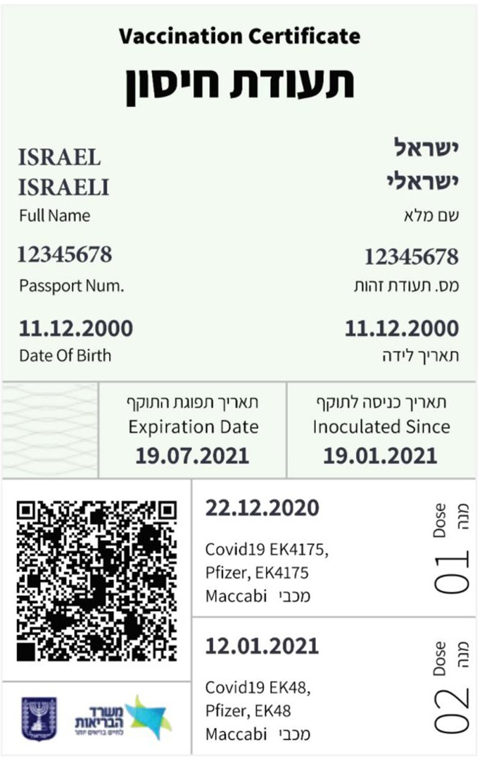 הדרכון הירוק הוא למעשה תעודת התחסנות למקבלי שתי מנות חיסון.