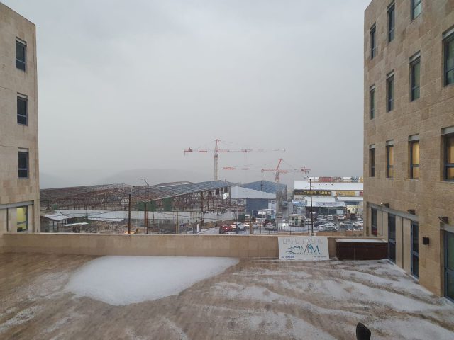 ברד כבד בירושלים. מחלון המשרדים של סרוגים צילמנו את חתיכות הקרח הענקיות שמכסות את הגגות בשכונת גבעת שאול בבירה.