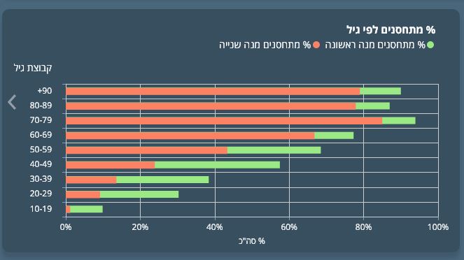 כך למשל בקרב בני 70 ומעלה, כ-80% מהאזרחים קיבלו 2 מנות חיסון ובקרב בני ה-60 כ-70%. המספרים מתחילים לצנוח בקרב האוכלוסייה שלא הוגדרה כקבוצת סיכון בני 60 ומטה, אך גם בה נראית התקדמות ממשית עם קרוב ל-60% שקיבלו מנת חיסון ראשונה מבני ה40-60.