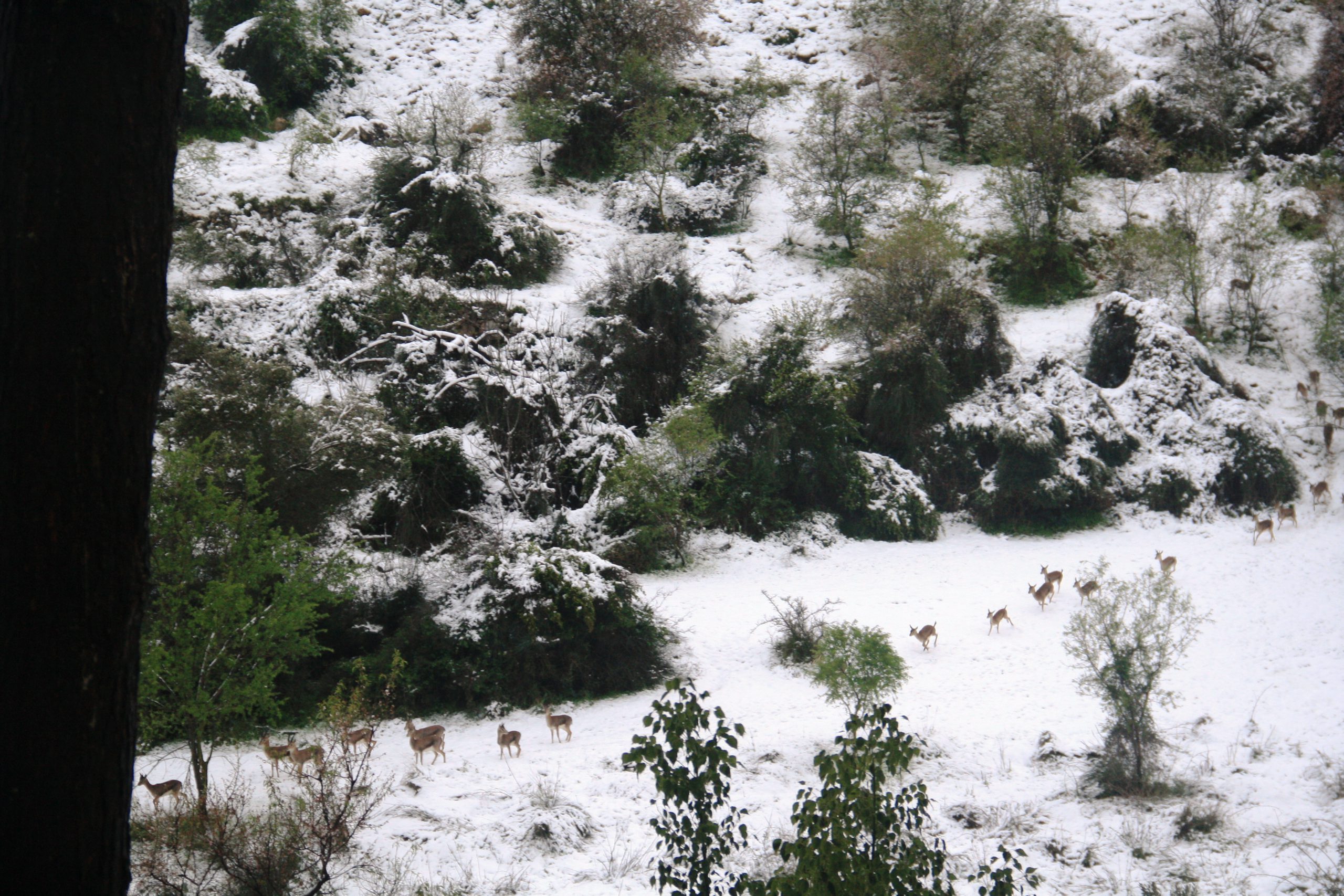 השלג כיסה את העמק הירוק בלבן, וכ-30 צבאים יצאו הבוקר לחפש ארוחת בוקר.