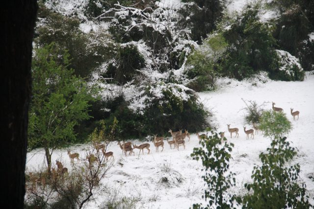 השלג כיסה את העמק הירוק בלבן, וכ-30 צבאים יצאו הבוקר לחפש ארוחת בוקר.