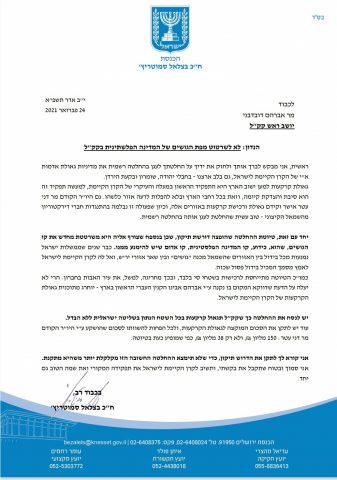 עוד הוסיפו אותם גורמים כי: "במכתבו לדובדב, סמוטריץ' טען כי יש להשוות את הסכום של תקציב רכישת הקרקעות לפחות ל150 מיליון ש"ח כפי שהיה בתקופת היו"ר הקודם דני עטר. אך יש לציין כי זהו היה התקציב לקדנציה שלמה של ארבע שנים, ופה מדובר על 38 מיליון ש"ח לשנה".