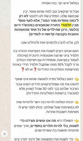 אתגר מפתיע לסמוטריץ' מהאגף החרד"לי: לסרוגים נודע כי מנהלי תלמודי התורה הציוניים יחד עם כ-1,000 הורים אשר שולחים את ילדיהם לאותם מוסדות -אינם מרוצים מהפתרון של סמוטריץ' למצוקת תלמודי התורה, והחליטו להתפקד לליכוד. לטענתם, כך יוכלו להילחם טוב יותר על הגדלת התקצוב לתלמודי התורה הציוניים.