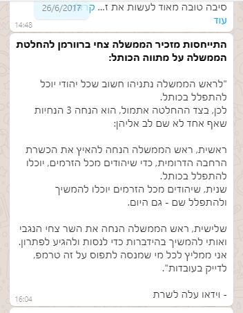 דרך נוספת של נתניהו לשרוד היא להעביר חוקים ואז לבטל אותם כעבור זמן. הזכרנו את תאגיד השידור הציבורי, שנתניהו העביר ואז נזכר שהוא בעייתי וביקש לסגור. אבל מה עם מתווה הכותל. הממשלה העבירה החלטה, המעבירה את ניהול החלק הדרומי של הכותל המערבי לידי הרפורמים.