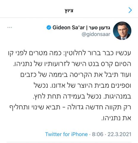 הצעד השני, כפי שאמר אצלנו במשדר- הטענה שגדעון סער מתרסק על פי הנתונים שאצלו, מה שעורר ביקורת חריפה מצד תקווה חדשה. על אף שיש סיכוי גבוה שהם ישתפו פעולה לאחר הבחירות, כרגע הם רבים על אותו מאגר קולות.