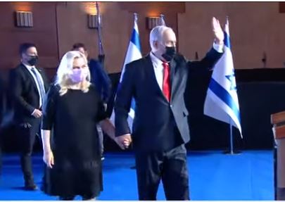 נתניהו הגיע למקום כשהוא מלווה ברעייתו שרה, שהתיישבה בקהל ולא עמדה איתו על הבמה. "חברי היקרים, חברות וחברי הליכוד. שרה עברה ניתוח אז ביקשתי ממנה לשבת ולא לעמוד, ושוב תודה על כל ברכות להחלמתה" אמר נתניהו.