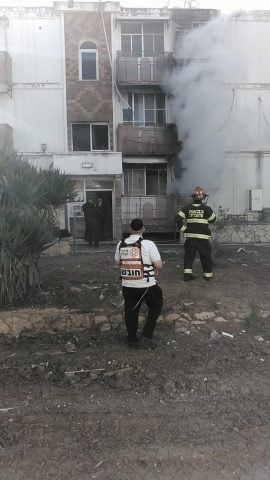 עמי ארזון חובש איחוד הצלה מסר: "מדובר בשריפה במבנה מגורים. כוחות הכיבוי חילצו מאחת הדירות גבר ללא רוח חיים. כמן כן הענקתי סיוע לאחת השכנות ששאפה עשן ומצבה מוגדר קל".