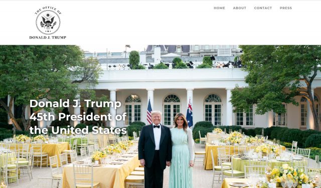בשלב הזה האתר מכיל בעיקר תמונות של טראמפ ורעייתו מלאניה, לצד קישור המאפשר לשלוח פניות לנשיא האמריקני לשעבר. עוד נאמר כי לשכת טראמפ תשתמש באתר לצורך שיתוף "מחשבות, בקשות וברכות".