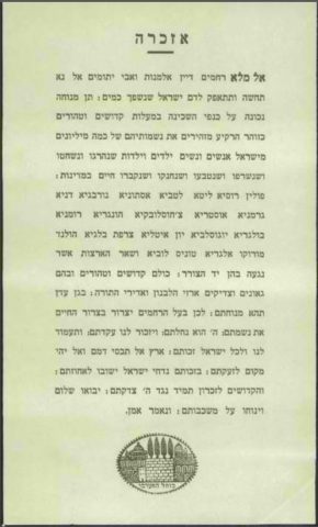 בנוסח 'אל מלא רחמים' אותו קבעה הרבנות לזכר נספי השואה, נזכרות כל המדינות אותן כבשו הגרמנים, כולל מדינות צפון אפריקה: מרוקו, תוניסיה, לוב ואלג'יריה – שבהם גם החלו הגרמנים בפתרון הסופי, אם כי בהיקפים קטנים בהרבה ממה שהתחולל באירופה.