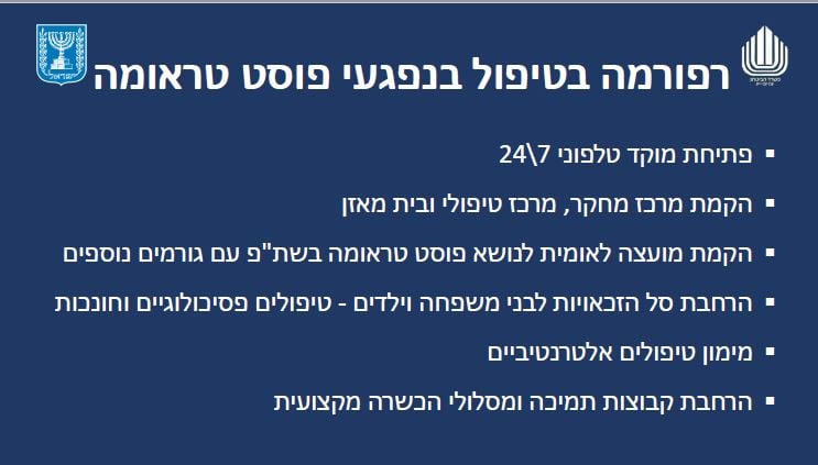 במצגת שהוצגה בתדרוך, פורטו הסעיפים לשיפור באגף השיקום במשרד הביטחון, חלקם באופן מיידי וחלקם דורשים החלטת ממשלה או חקיקה, לשינוי הנהלים הנוכחיים.