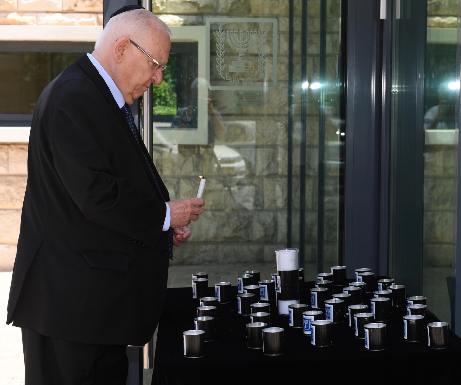 מחוץ לבית הנשיא הוצב שולחן זיכרון ובו 45 נרות נשמה, כמספר ההרוגים באסון, אותם הדליק הנשיא.