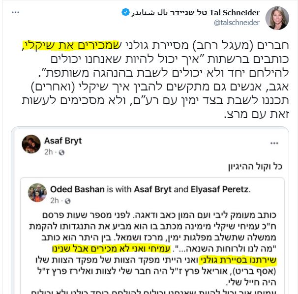 זה המשיך היום עם כתב חדשות 12 יוסי מזרחי, שהחל לתהות על צעדי מחאה נגד אשתו של שיקלי העובדת כיועצת בבית ספר תיכון בעמק יזרעאל.