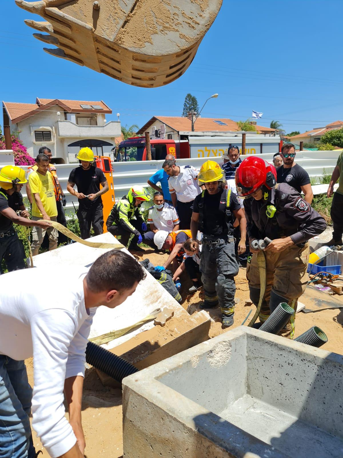 תאונת עבודה ביבנה. ארון ציוד מבטון במשקל כבד ובטונדה נפלו על שני פועלים באתר בניה ברחוב הנגב ביבנה.