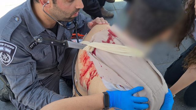 פראמדיקית מד"א סיגלית מזרחי סיפרה: "הגענו למקום האירוע וראינו שני פצועים עם פצעי דקירה בפלג גופם העליון כשהם בהכרה. הענקנו להם טיפול רפואי מציל חיים שכלל חבישות ועצירת דימומים, העלינו אותם במהירות לניידות הטיפול הנמרץ ופינינו אותם לבית החולים כשמצבם קשה וקל."