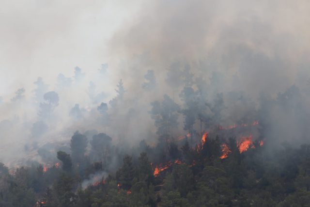 שריפת ענק מתפתחת בהר הרוח בסמוך לישובים נווה אילן, מעלה החמישה, אבו-גוש ועוד.