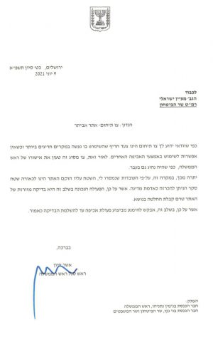 מכתב ראש הסגל של נתניהו על צו התיחום לאביתר