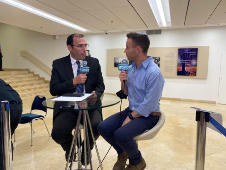 אולפן סרוגים ביום שידורים מיוחד ממשכן הכנסת לרגל השבעת הממשלה ה-36 בראשות ממשלת בנט ולפיד.