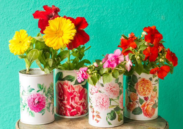 אז זה הזמן לפתח את הצד היצירתי שבכם, אם נשארו לכם קופסאות שימורים, אתם יכולים להכין עציצים מרהיבים