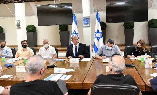 לקראת החמרות בהנחיות הקורונה? ראש הממשלה, נפתלי בנט, מקיים דיון בעניין נגיף הקורונה בקריה בתל-אביב.