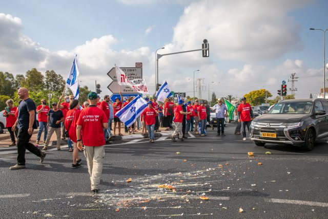 מחאת החקלאים ברחבי הארץ: חקלאים משליכים ביצים בהפגנה בצומת הגומא ברמת הגולן. אתמול פוצצו החקלאים פגישת מו"מ בנוגע לרפורמת הייבוא@rubih67 pic.twitter.com/d5AWTNzlP7