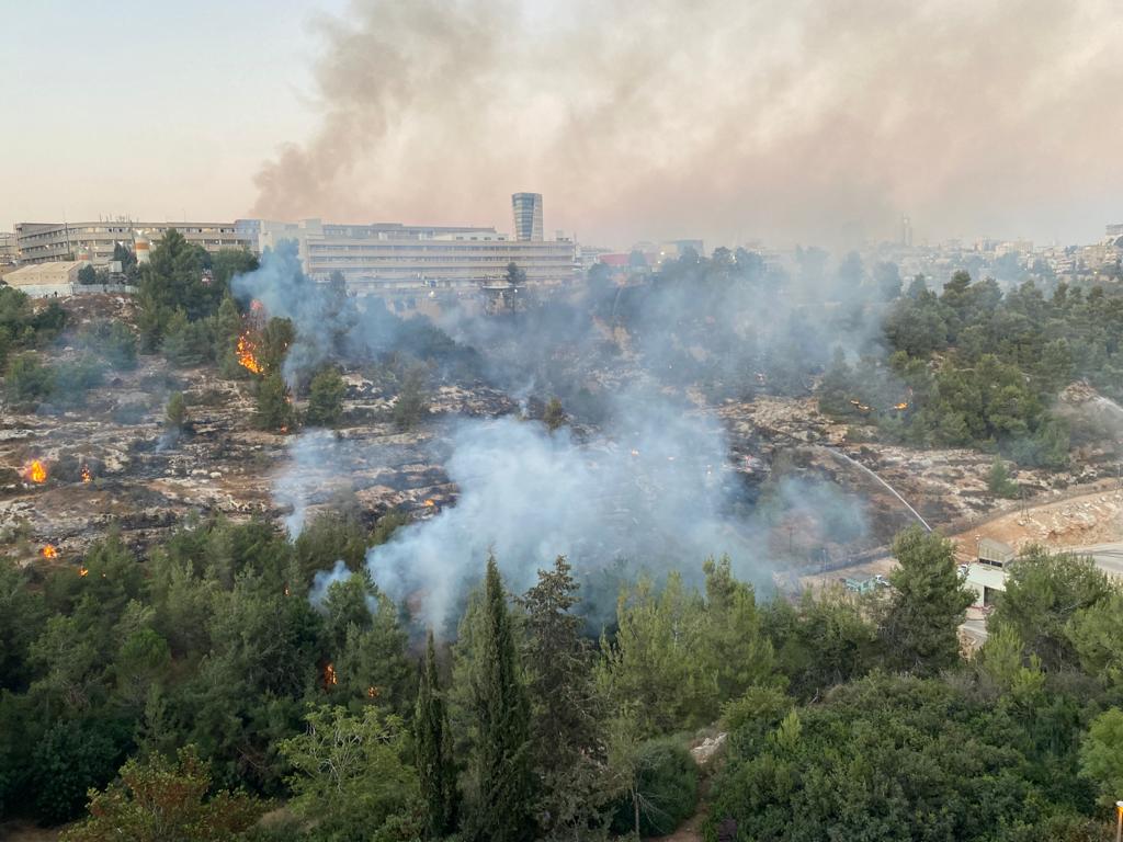מטוסי כיבוי חגים באוויר והעשן הכבד עוטף את הכניסה לירושלים.