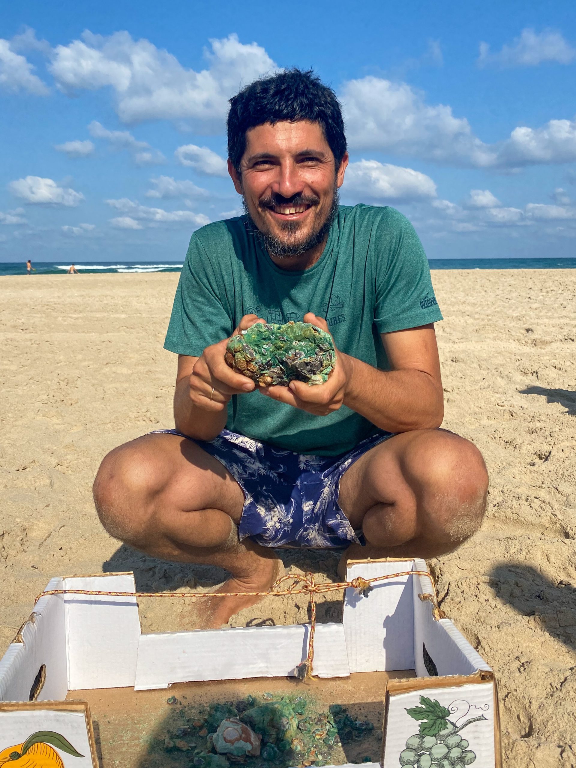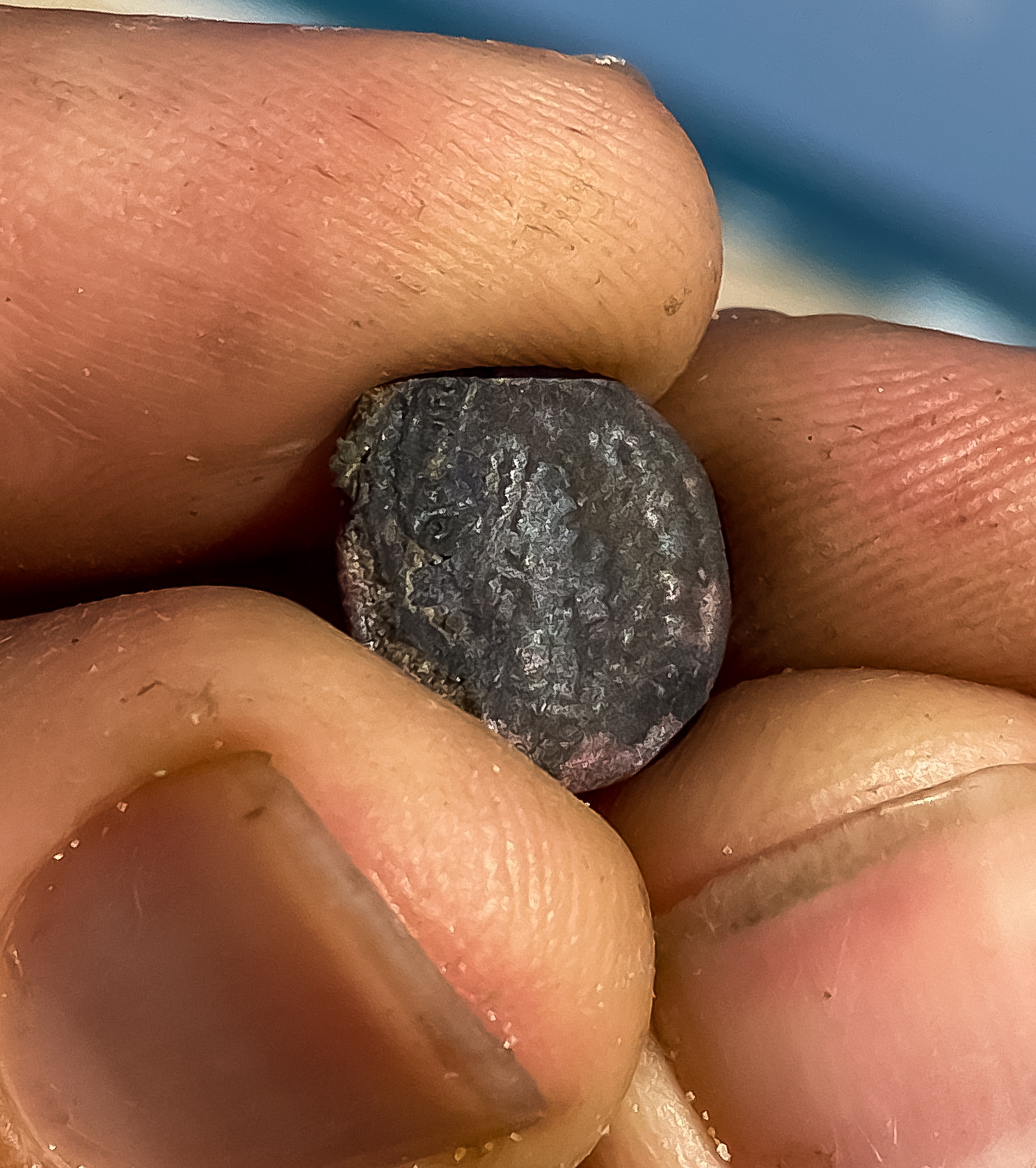 יותם סיפר, כי גוש המטבעות אותר במרחק 70 מ' מהמים, לא רחוק מהאוהל שבו שהו הוא ובני משפחתו. "הבחנתי בניצוץ שבהק מתחת לאור הפנס שמאחורי האוהל שלנו, וכשניגשתי לבדוק, נדהמתי לראות שמדובר בגוש של מטבעות עתיקים", הוא מספר.