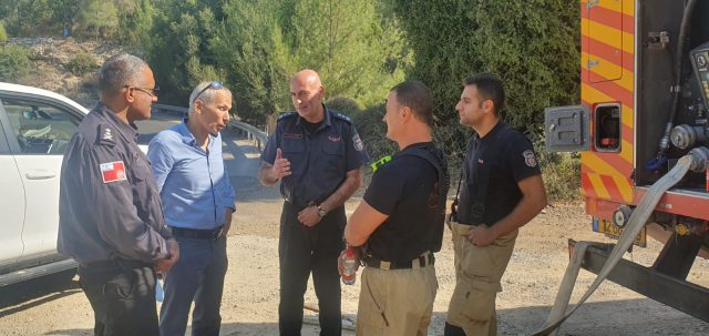הנציב והשר סיימו לפני דקות אחדות סיור שטח במוקדי השריפות ביישובי פרוזדור ירושלים ועמדו מקרוב אחר מאמצי הכיבוי הנמשכים 45 שעות ברציפות. החל מהבוקר פועלים 14 מטוסי כיבוי במוקדי האש הפעילים בדגש על הר איתן, ואדי צובה וגבעת יערים.