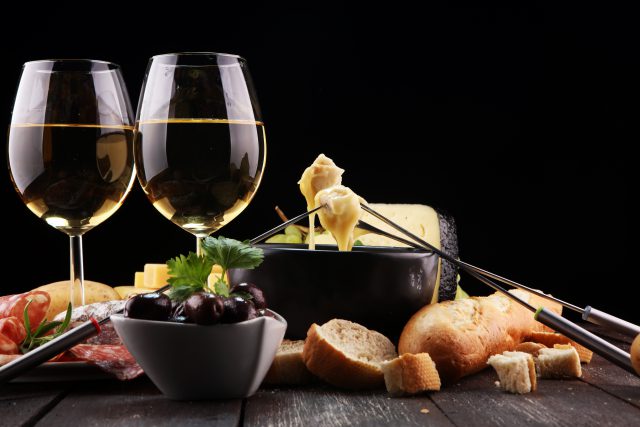 משפשפים את שן השום בפנים הסיר, מוסיפים את היין, הוודקה והגבינות וממיסים יחד. כשהתערובת נמסה מוסיפים עמילן תירס. מערבבים היטב בעזרת כף עץ, בצורה קבועה תוך ציור הספרה 8 בכף הערבוב.
